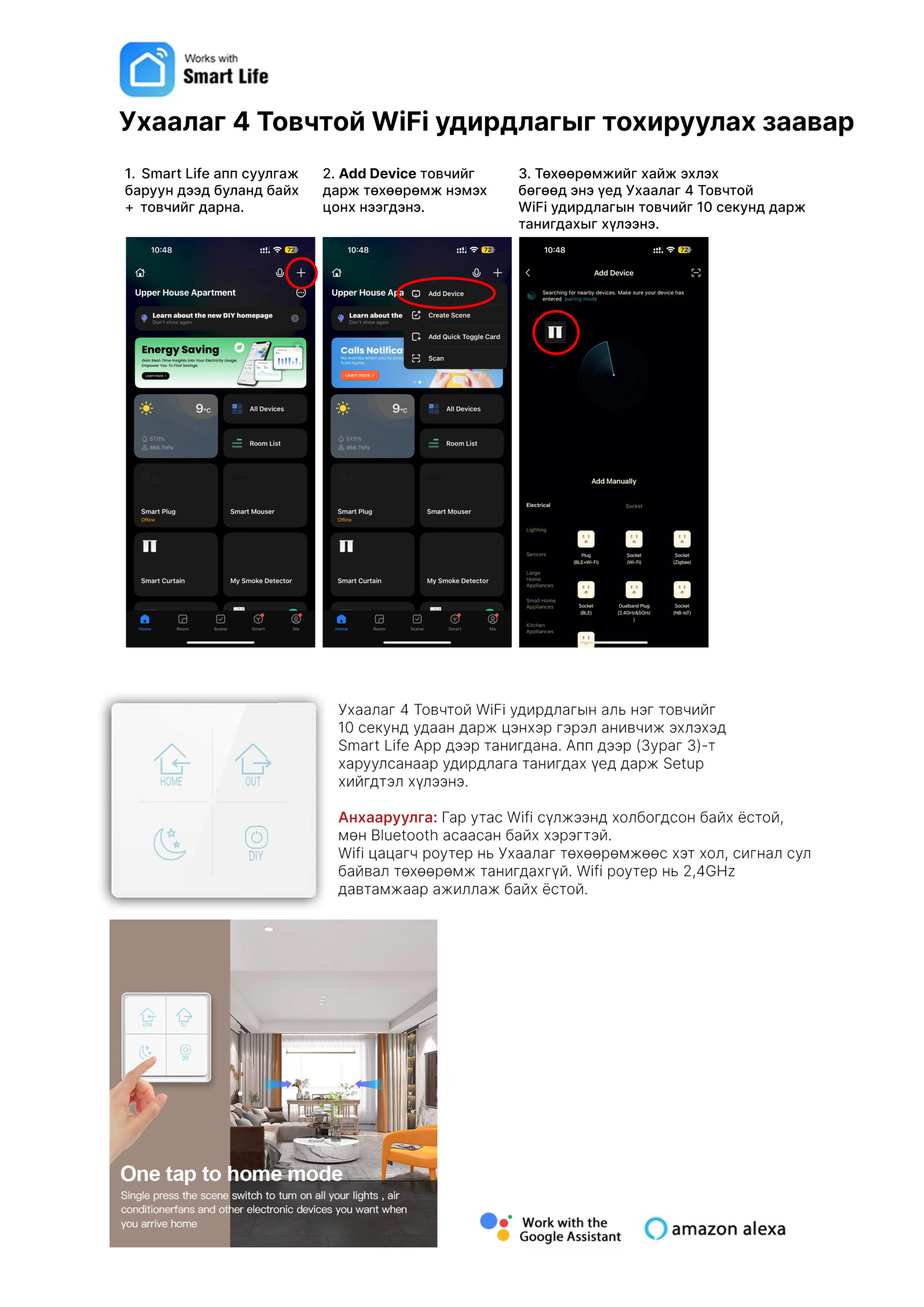 Ухаалаг гэрийн бүх системд нийцтэй (Smart Life гэх мэт)